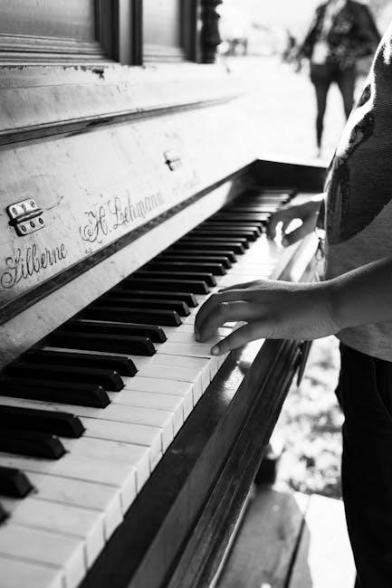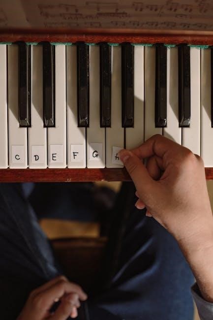 PDF resources offering letter notation for piano frequently start with these simple melodies. Songs like “Mary Had a Little Lamb” and “Ode to Joy” (simplified versions) are excellent examples. These tunes reinforce note recognition and hand positioning without overwhelming the learner.